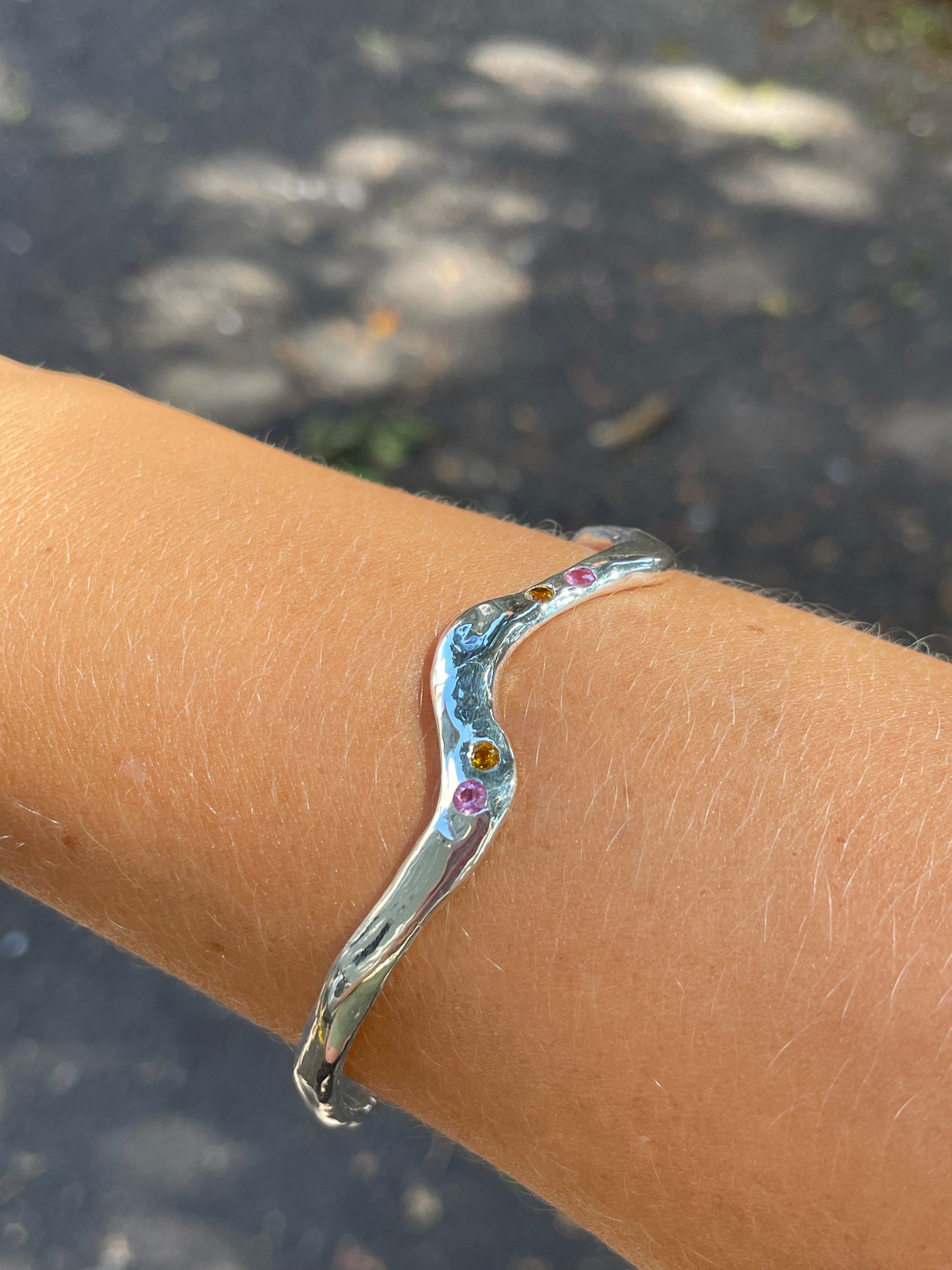 Sterling silver set with 4 sapphires.